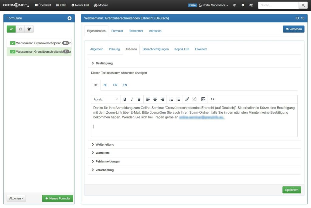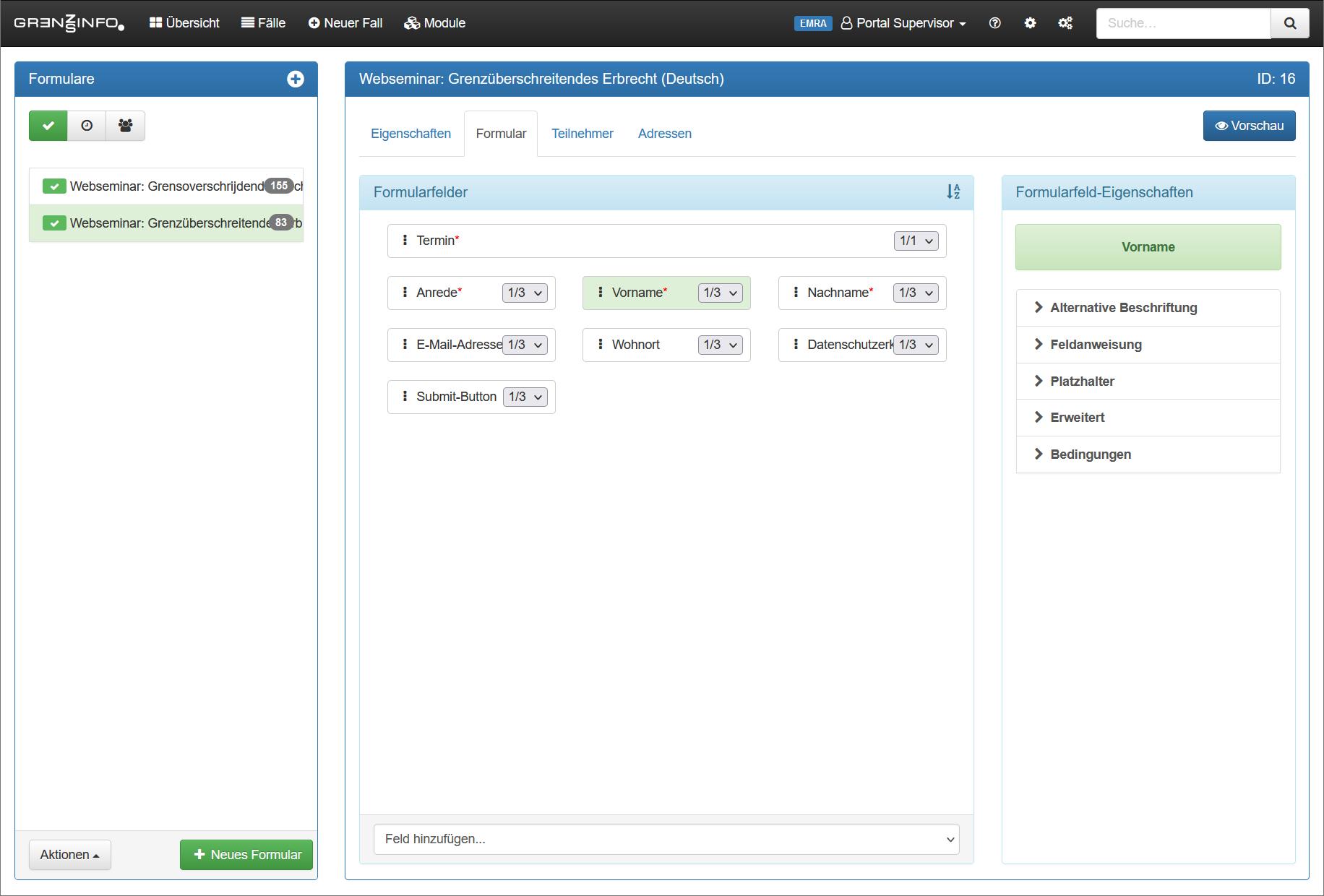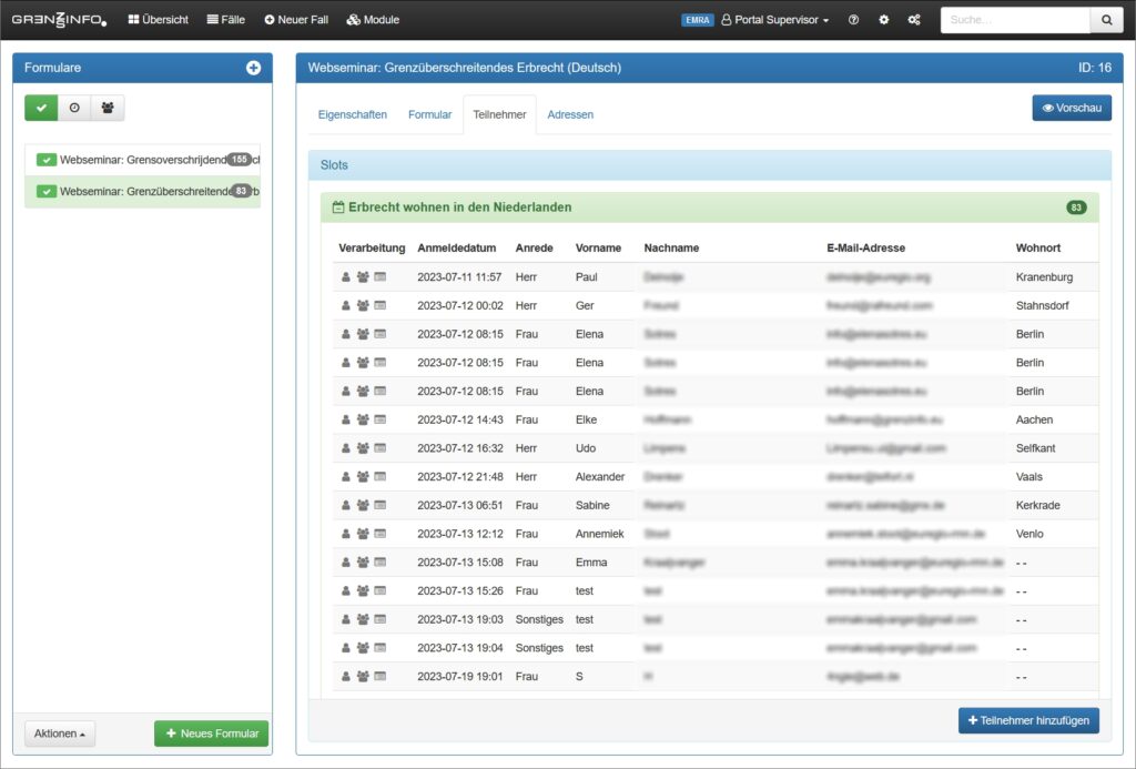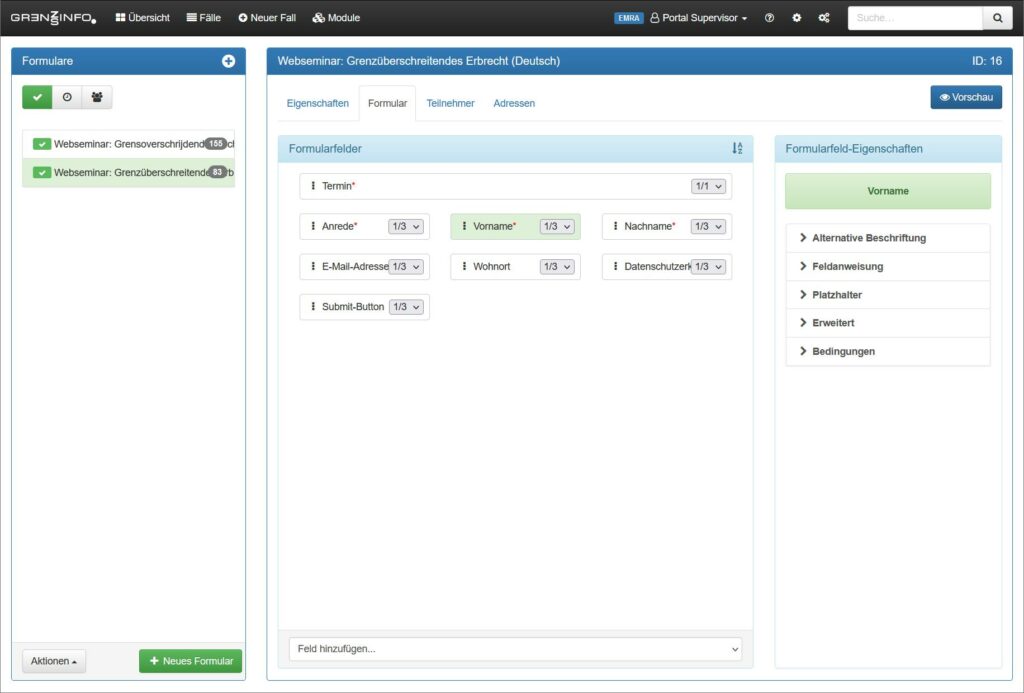 Erstellen Sie Formulare für die Anmeldung zu Ihren Veranstaltungen. Übernehmen Sie Teilnehmer als Kontakt oder erstellen einen Fall.