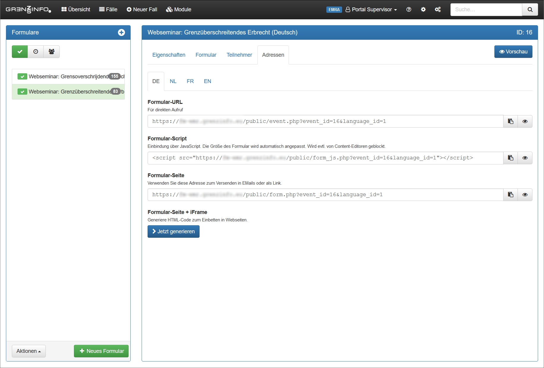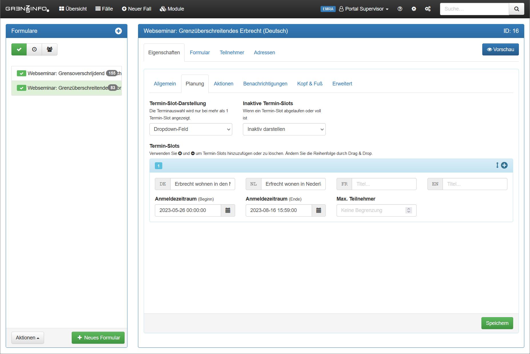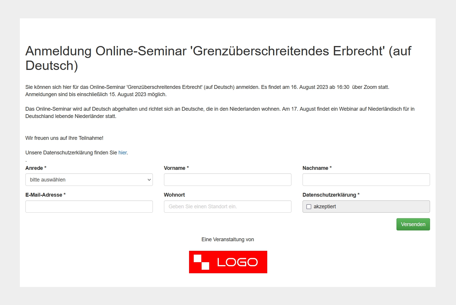 Erstellen Sie Formulare für die Anmeldung zu Ihren Veranstaltungen. Übernehmen Sie Teilnehmer als Kontakt oder erstellen einen Fall.