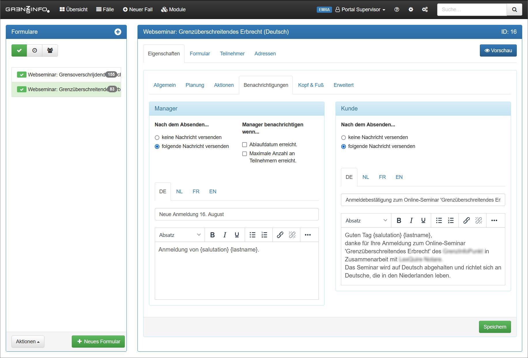 Ein wesentliches Merkmal von PELA CRM ist die Anpassbarkeit. Egal ob Formularfelder, ausgehende Nachrichten, Anmeldeformulare oder Datenexport. Jeder Aspekt ist inhaltlich und (fremd)sprachlich konfigurierbar.